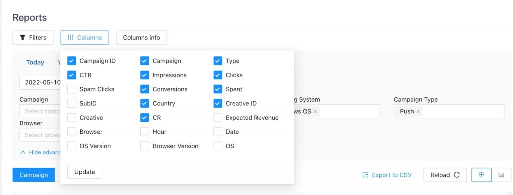To have a deeper look into your campaigns, we can adjust the columns you want to see when looking at a report.
