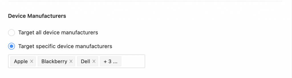 Then, you can choose which device type you would like to target. You can choose if you want to target: