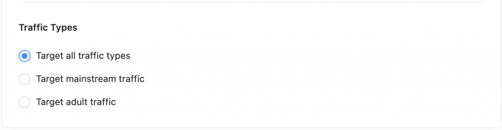 In Timing section, you can choose during which hours during the day, you want your campaign to receive traffic, and in which hours you do not want.