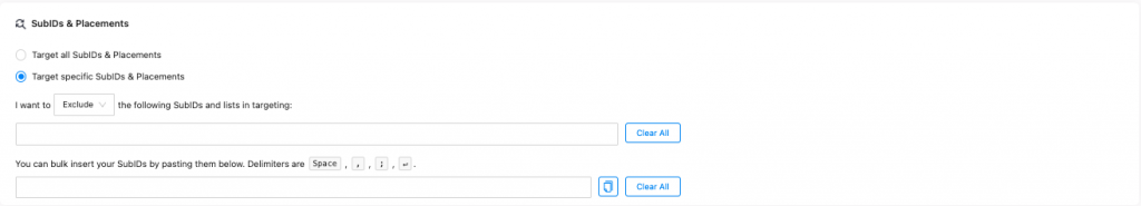 To do that, go to the campaign where you want to whitelist or blacklist sources, and scroll down to the SubID & Placements.