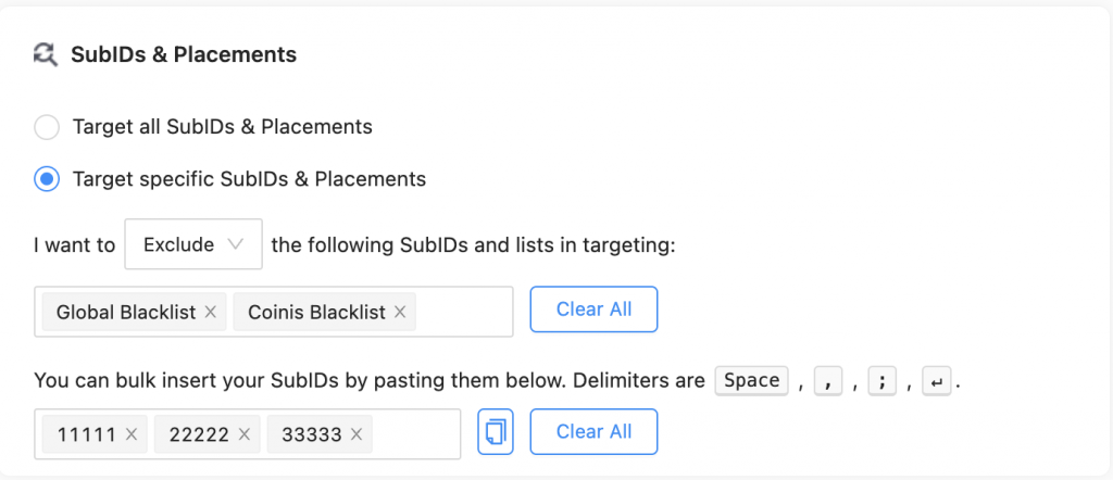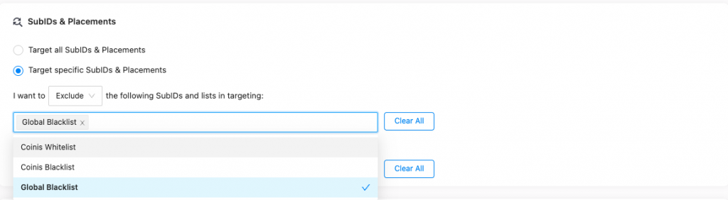 If you have previous experience in running campaigns on our platform and you have identified “bad” or “good sources”, you can whitelist or blacklist sources.