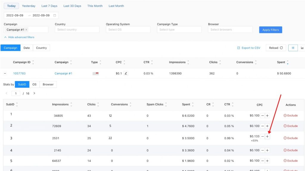 Now, we want to change a bid for source “3” because it is extremely profitable for us, and we want to get more traffic from that source.