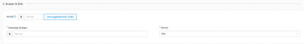 Under Budget & Bids you can set your bid. On the right side, you can see recommened bid, and by clicking on that, you can the recommended bid will be written in the bids section.