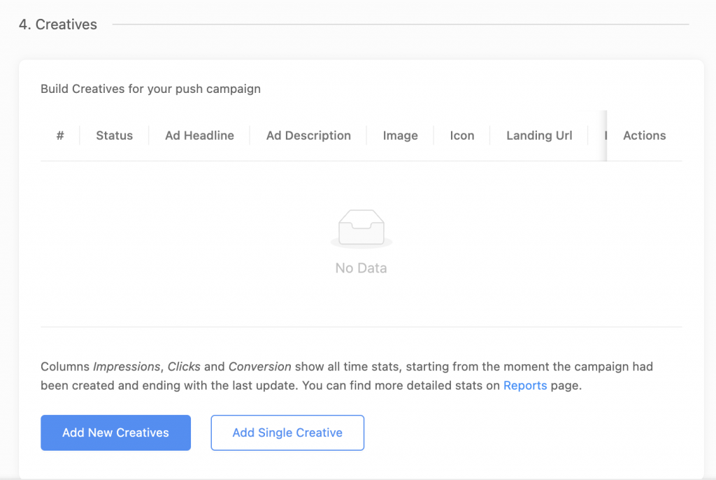 To create your first push campaign, login with your account details, and press “Start New Campaign”.