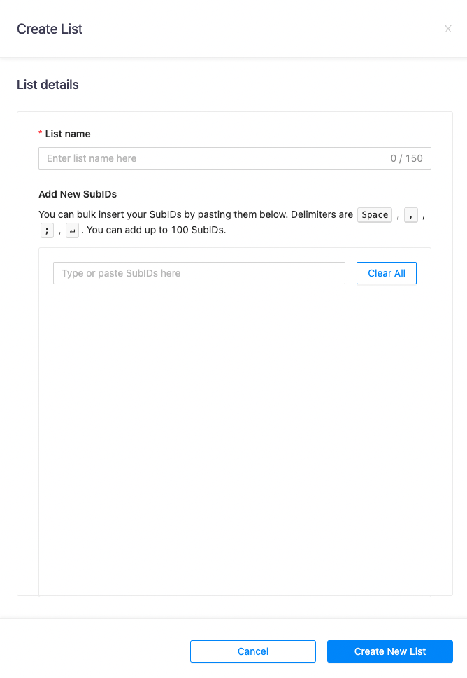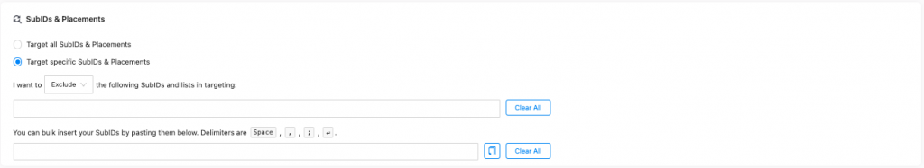 To add a local list to the campaign just go to Edit Campaign and scroll down to the SubID & Placements Section. There, you will see this: