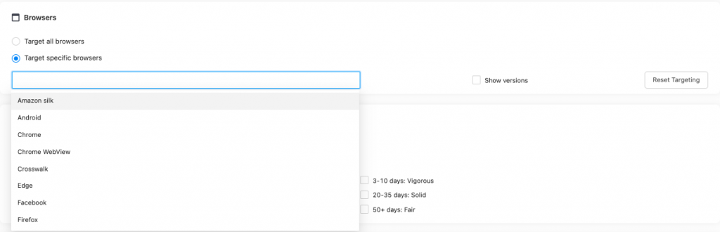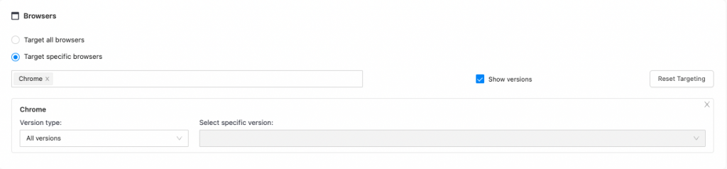 Here, you can select which browsers you want to target. You can target one, or a couple of them.