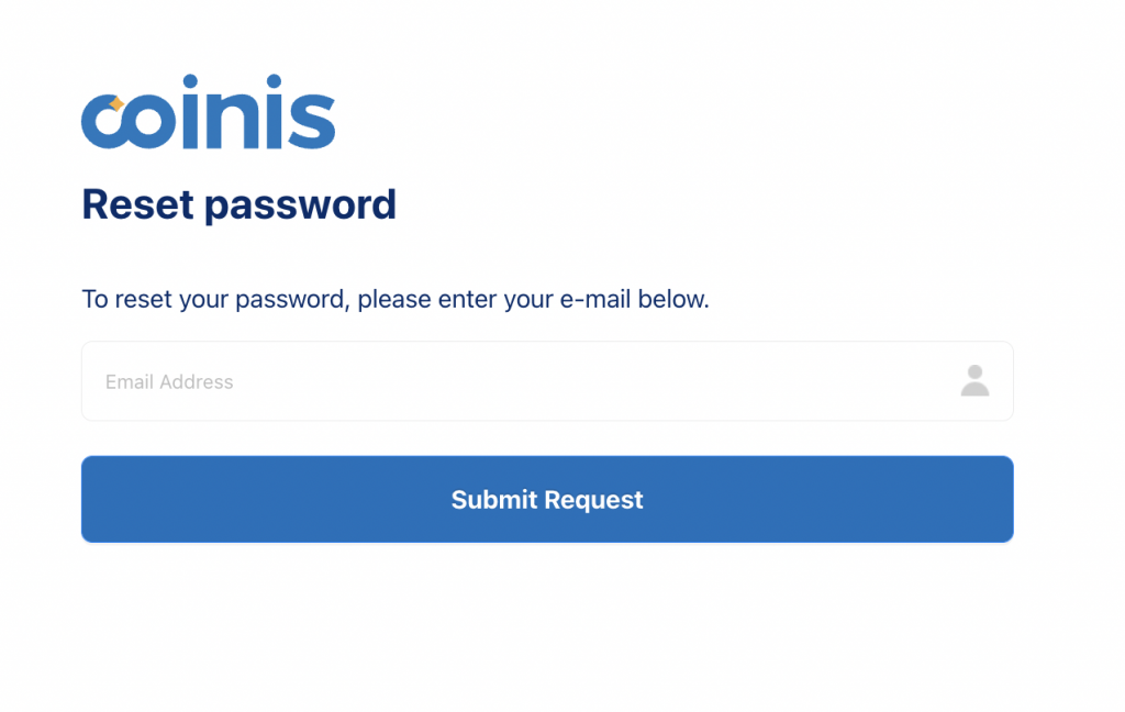To reset your password, please go to the Coinis Advertiser Platform and enter your e-mail address in the provided space. Then click on the “Submit Request” button.