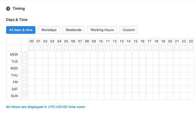 Choosing all days and time means that your campaign will be active throughout the week and will not be paused at any time by the system.