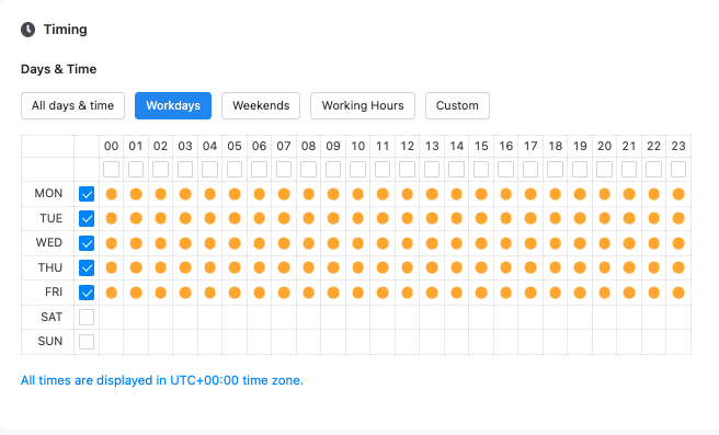 Choosing workdays means your campaign will be active only from Monday until Friday and will be paused throughout the weekend.