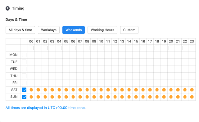 Choosing weekends means your campaign will be active only on Saturday and Sunday and will be paused throughout the workdays.
