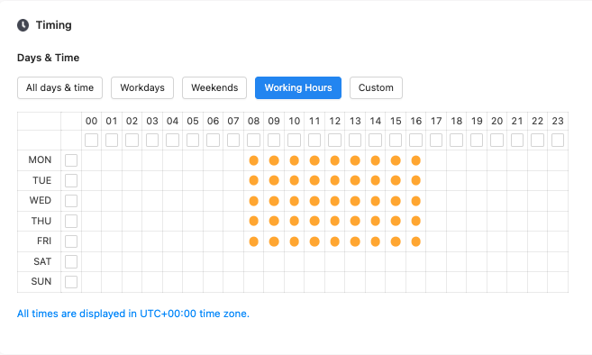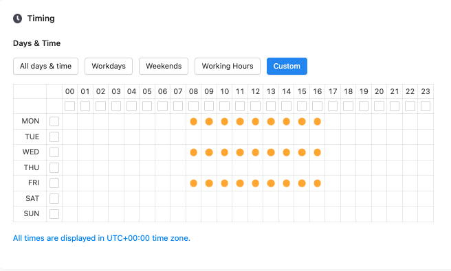 For example, you want to target Monday, Wednesday, and Friday from 08:00 until 16:00.