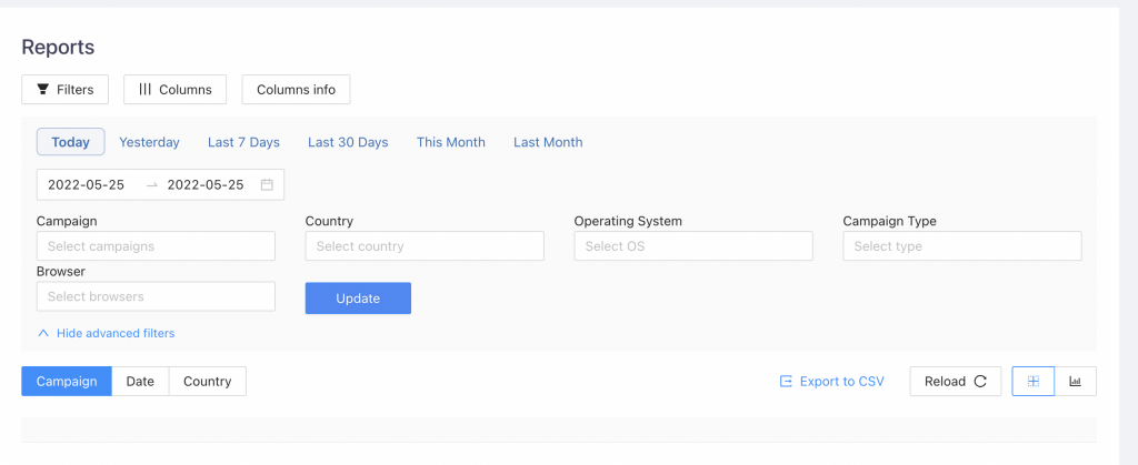 Coinis.com enables you to track your performances in the section Statistics. Furthermore, you can filter the statistics for a certain period and by country, browser, operating system, or zone.